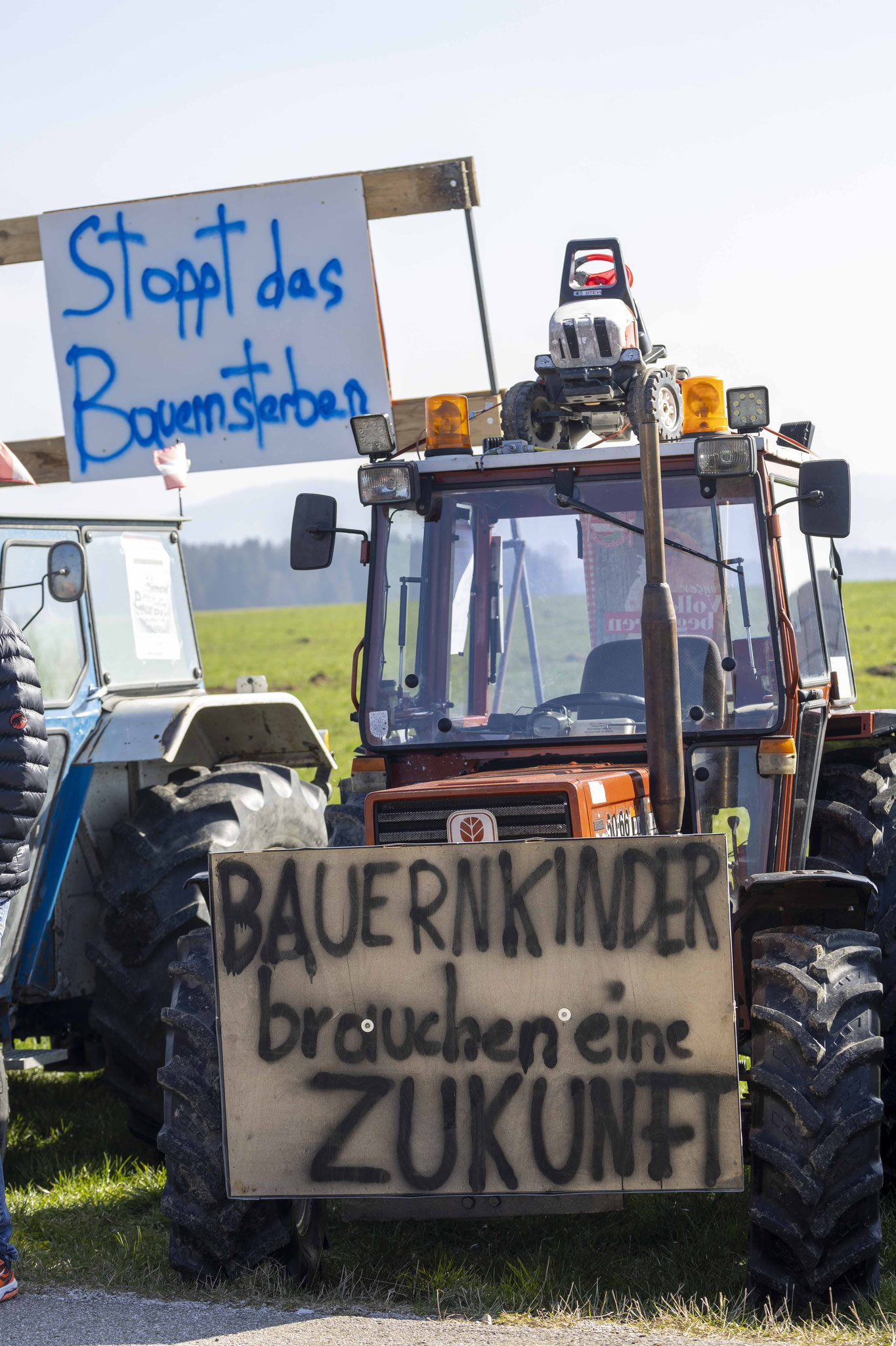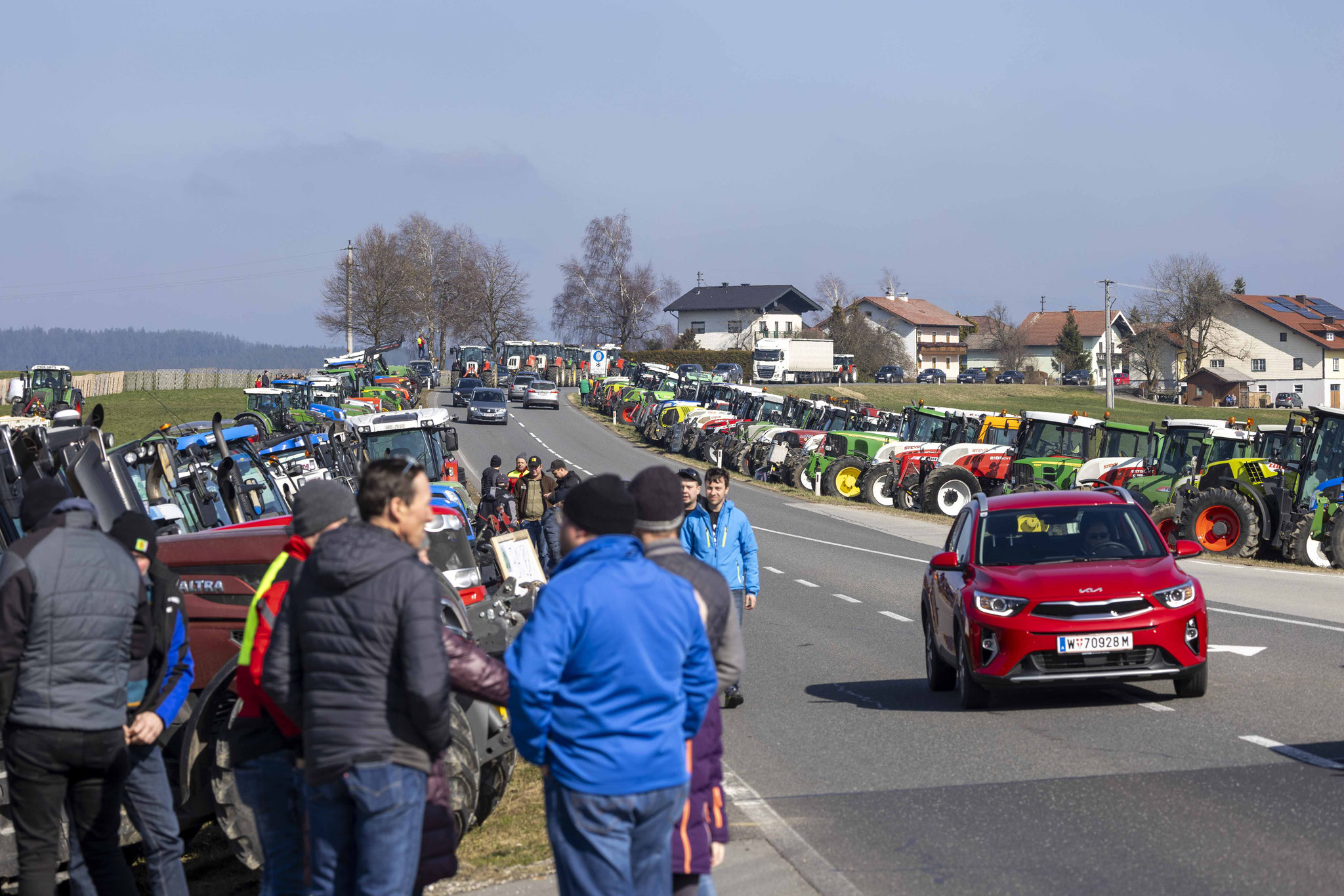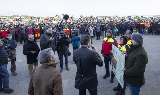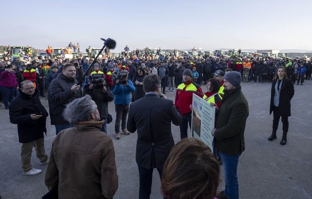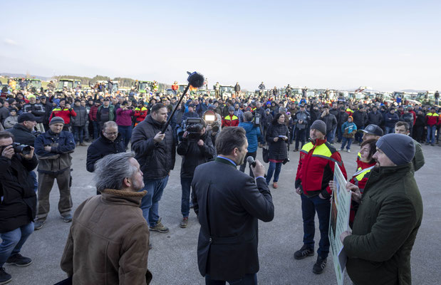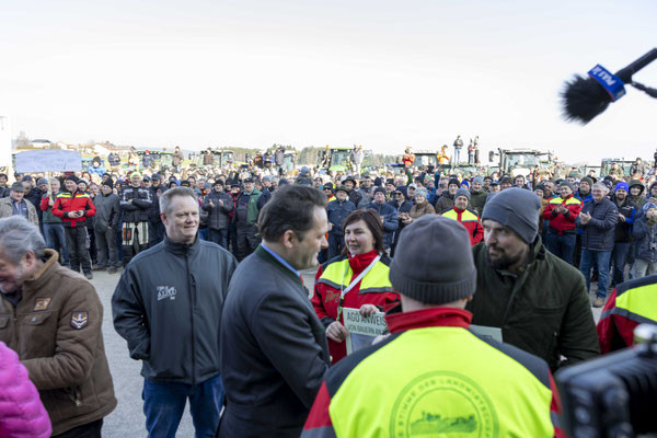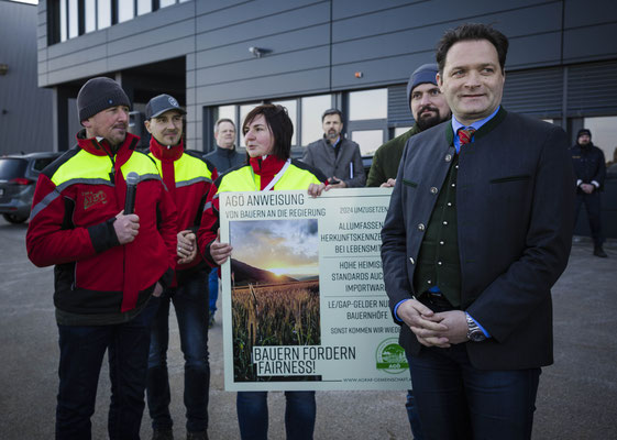 Zahlreiche Landwirte haben am Freitagnachmittag den Besuch von Landwirtschaftsminister Norbert Totschnig (ÖVP) in Pöndorf (Bezirk Vöcklabruck) zum Ausdruck ihres Protestes genutzt.