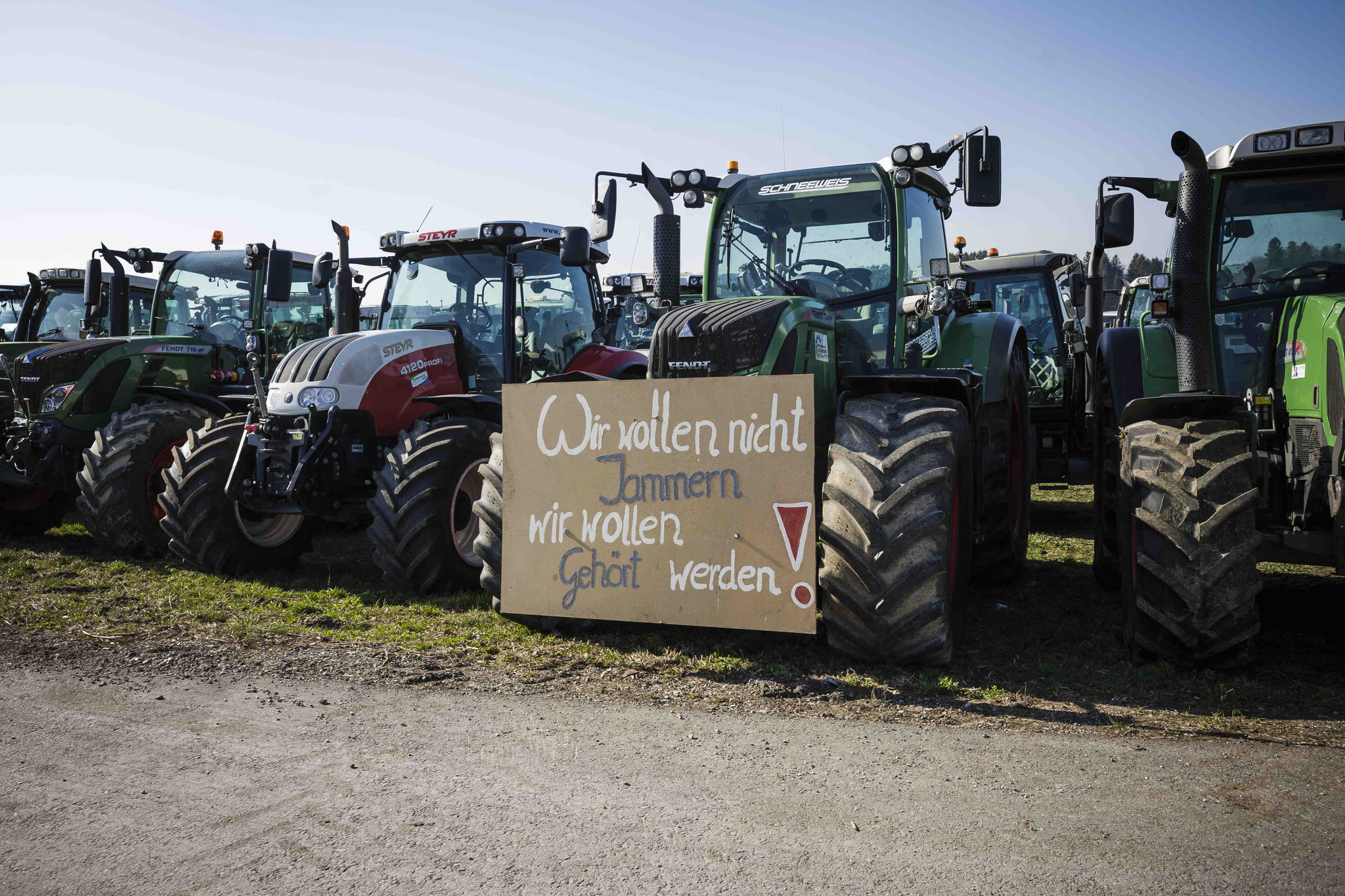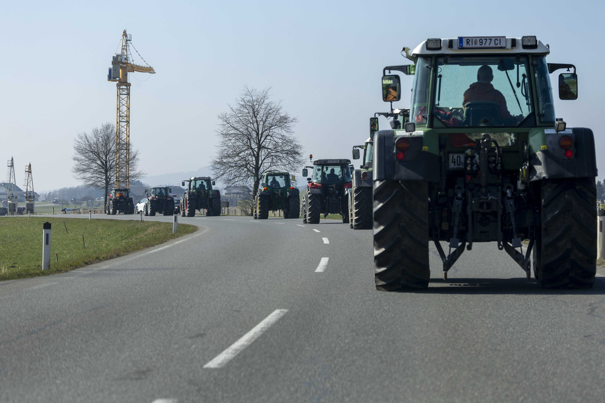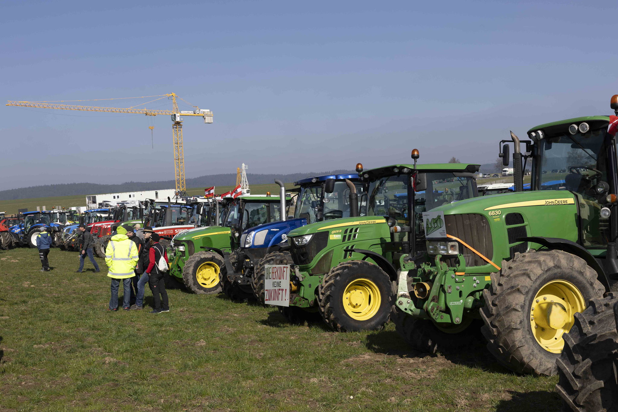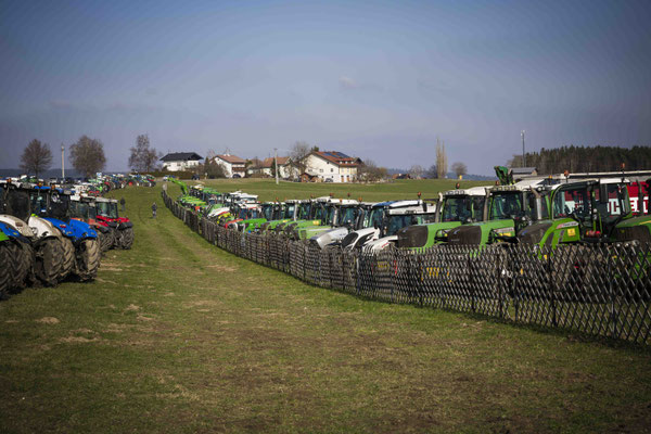 Unter dem Motto "Wir suchen den Minister" haben sich eine große Anzahl an Bauern mit Traktoren zu einer Protestfahrt zusammengeschlossen. Gefordert werden Änderungen in der Herkunftsbezeichnung