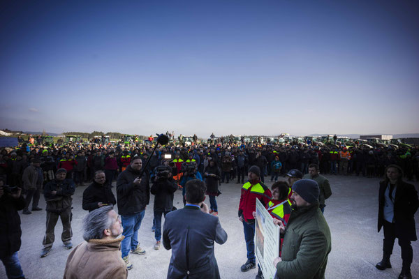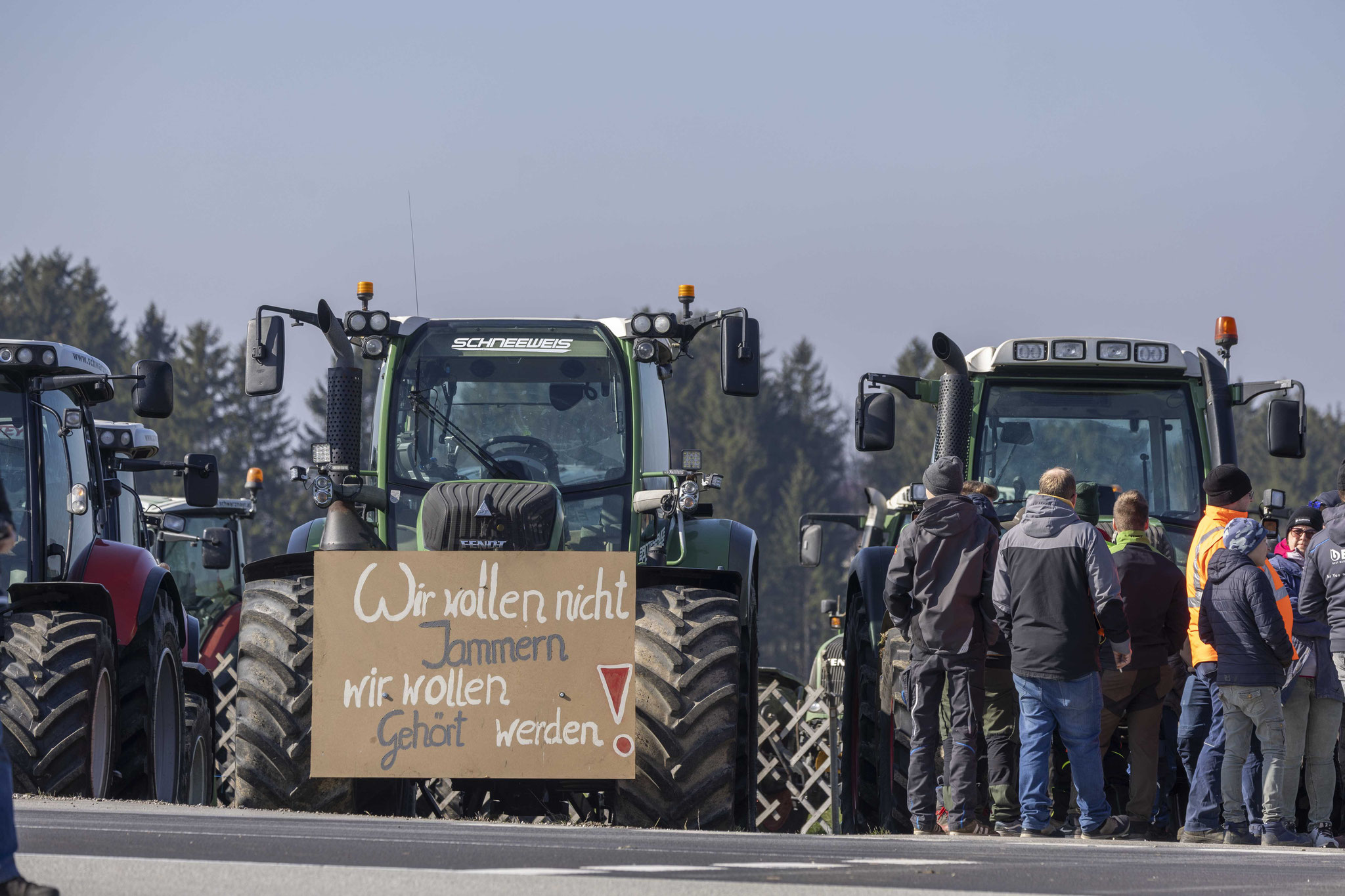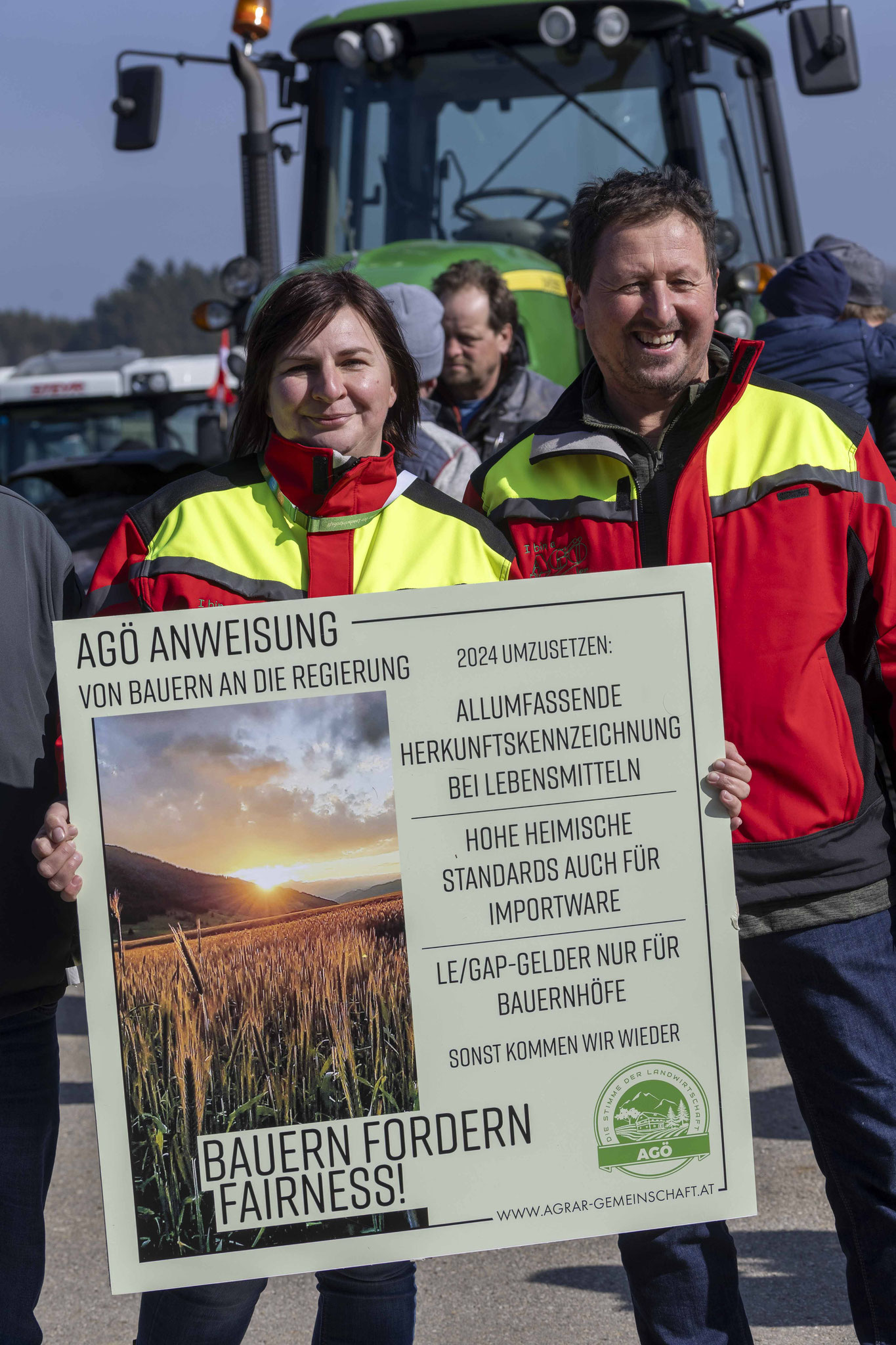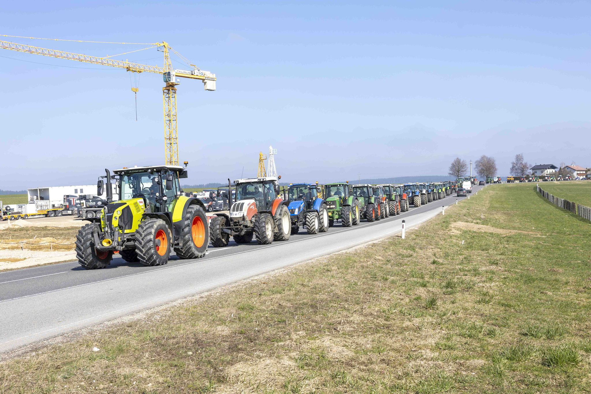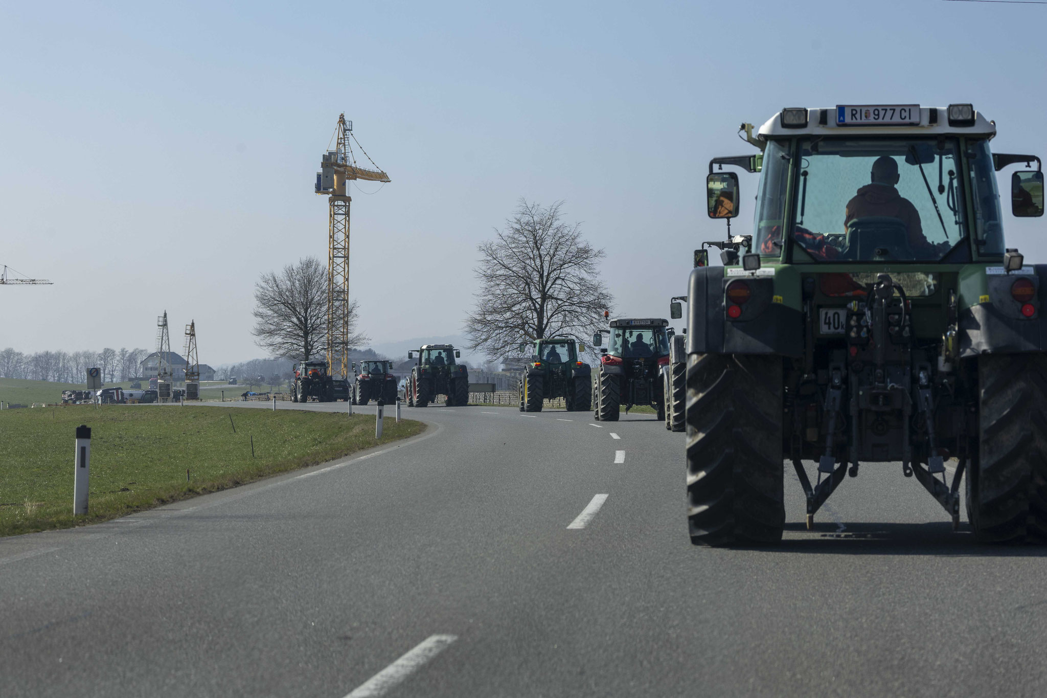 Unter dem Motto "Wir suchen den Minister" haben sich eine große Anzahl an Bauern mit Traktoren zu einer Protestfahrt zusammengeschlossen. Gefordert werden Änderungen in der Herkunftsbezeichnung